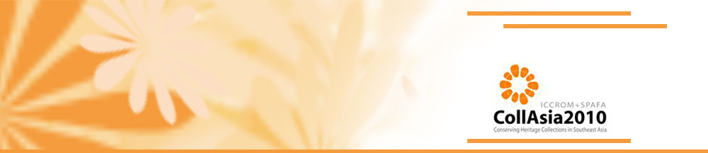 SEAMEO SPAFA and ICCROM invite all former CollAsia2010 participants to submit proposals for contributing to the Forum. Participants can discuss and update the audience on the adaptation of approaches to conservation in their conservation projects or training events or other aspects of concrete experiences that the former participants consider as a direct outcome of having participated in CollAsia2010. CollAsia2010 has covered the following topics: storage, climate change, community, built heritage, exhibition, intangible cultural heritage, textiles, traditional knowledge conservation methodologies, underwater archaeology, preventive conservation, flexible materials, and conservation of on-site objects. Proposals should consist of an abstract of 200 words, outlining the issues to be discussed in the presentation. During the seminar 20 minutes will be allotted for each presentation. The proposals for papers should be sent to SEAMEO SPAFA not later than 20 July 2011. The abstract proposal should also be accompanied with brief bio-data information of no more than 150 words. The abstract and bio-data should be sent as an attachment to patchy@seameo-spafa.org and Kevin@seameo-spafa.org. The proposals will be screened by SEAMEO SPAFA and ICCROM. In the selection of the presentations, special attention will be paid to the relevance of the proposal to the development of new conservation solutions for collections in diff erent contexts and to the innovative dimension of the issues discussed. |